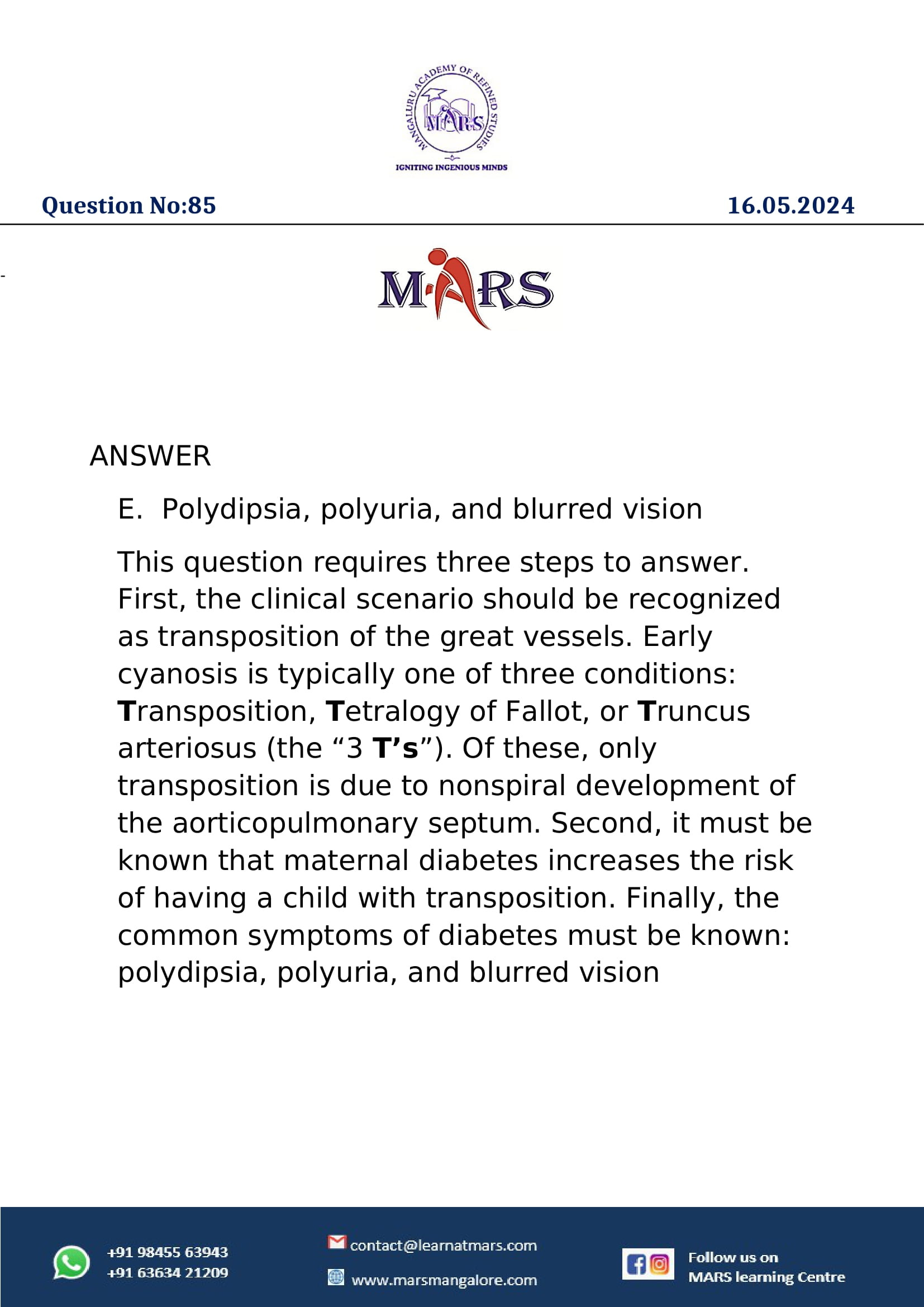 ANSWER TO DAILY QUESTION NO - 85