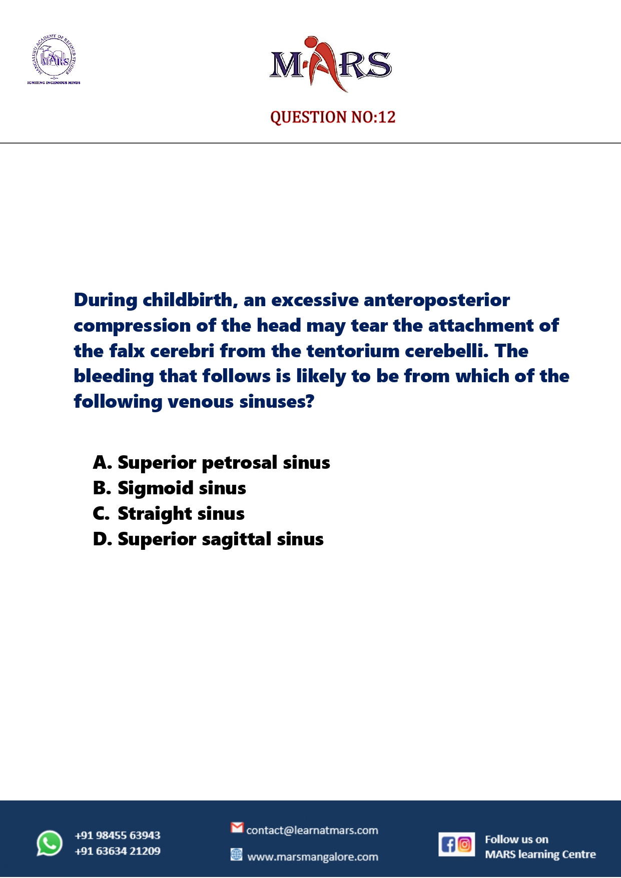 CRANIAL CAVITY QUESTION NO - 12